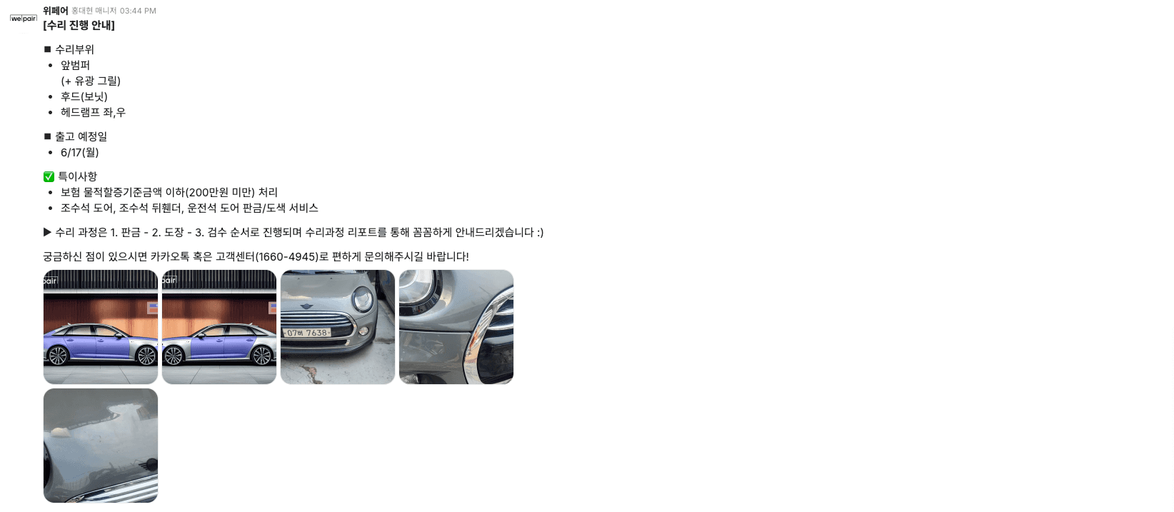 확인을 거친 뒤 차주님에게 수리 예정 항목들을