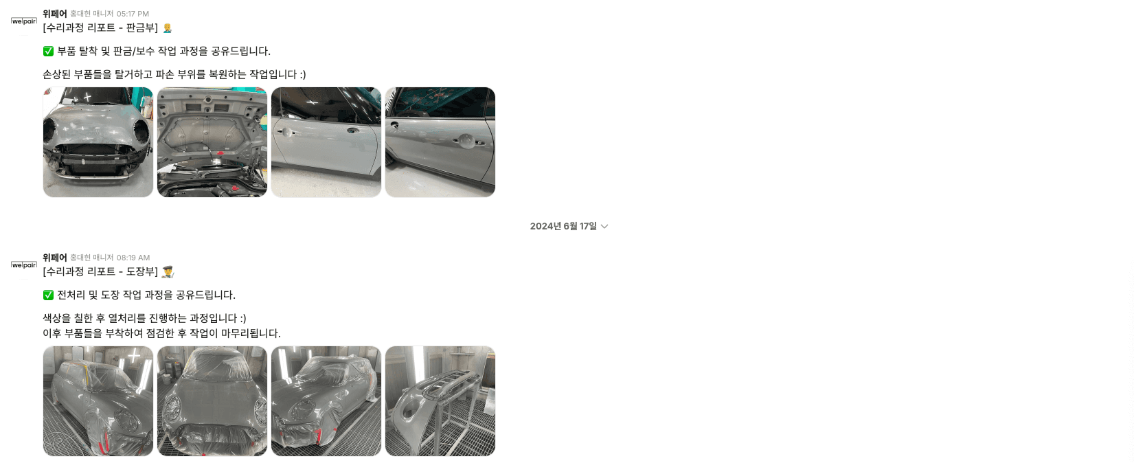 위페어 리스토어팀의 수리 과정 리포팅을 통해