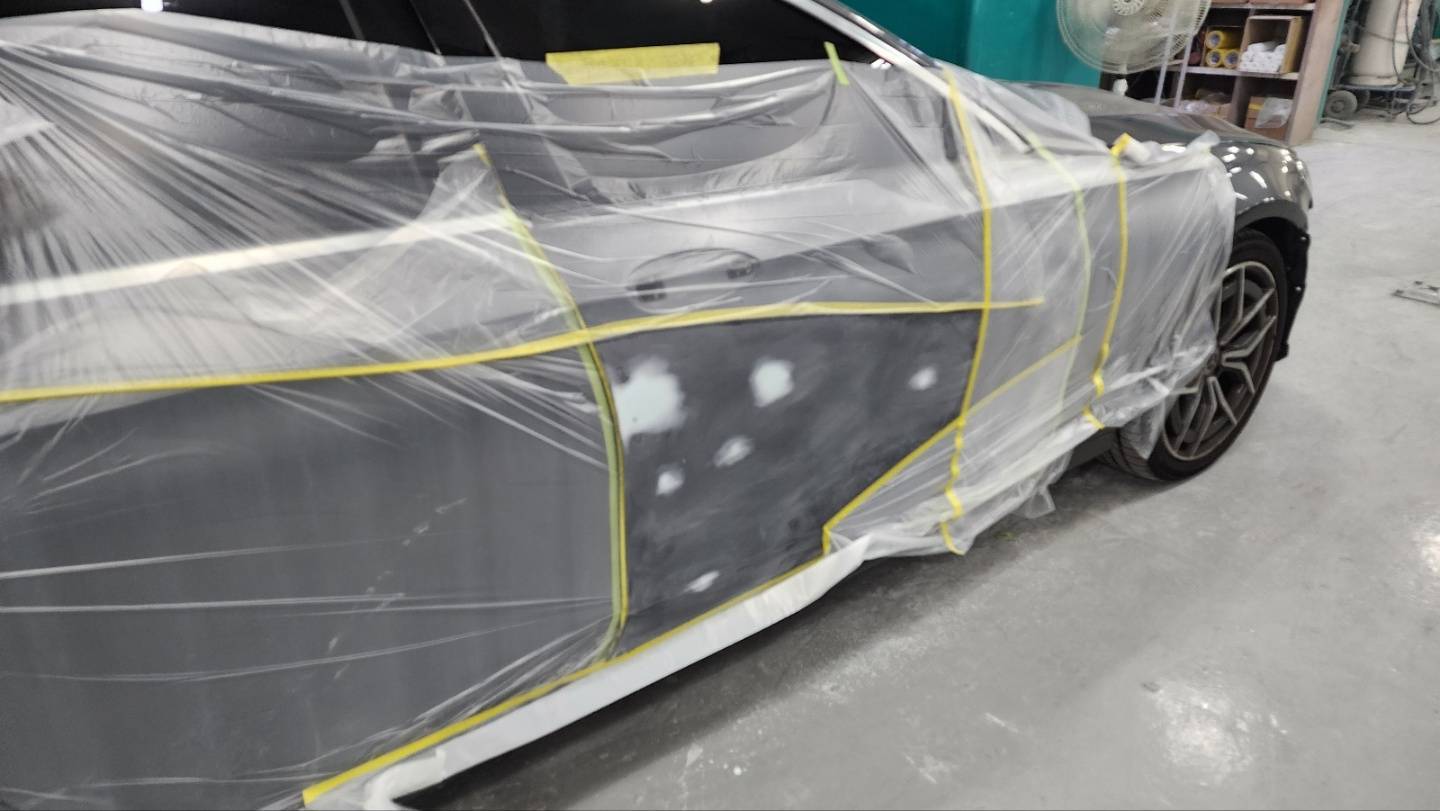 벤츠 E클래스 도장 작업이 진행되는 모습을