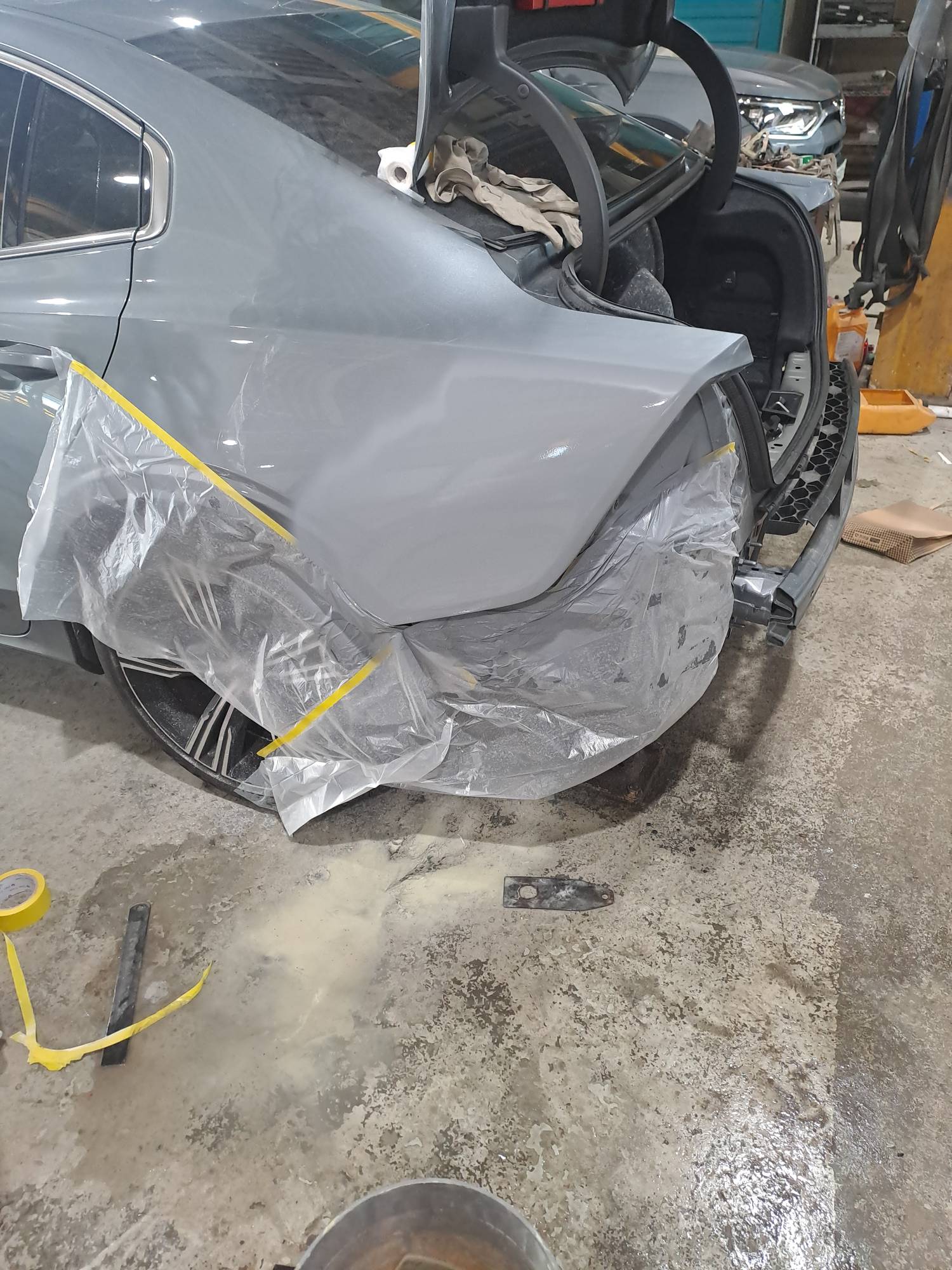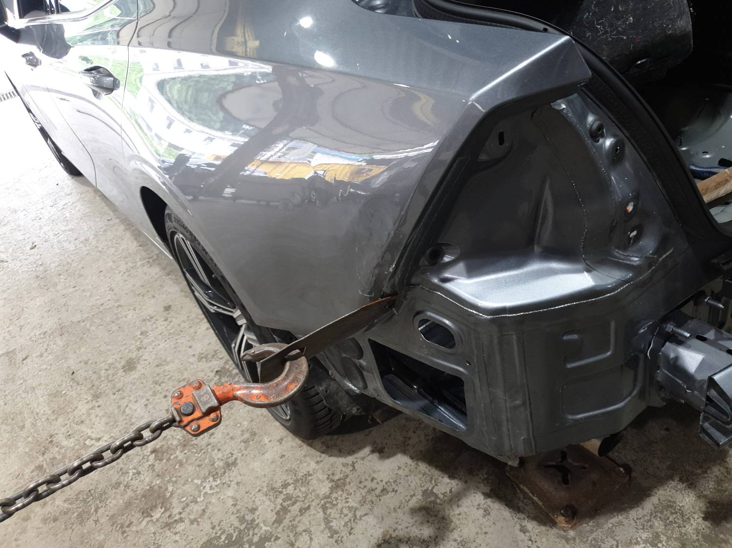 이 후 뒤범퍼와 휀더 수리가 진행될 차량은