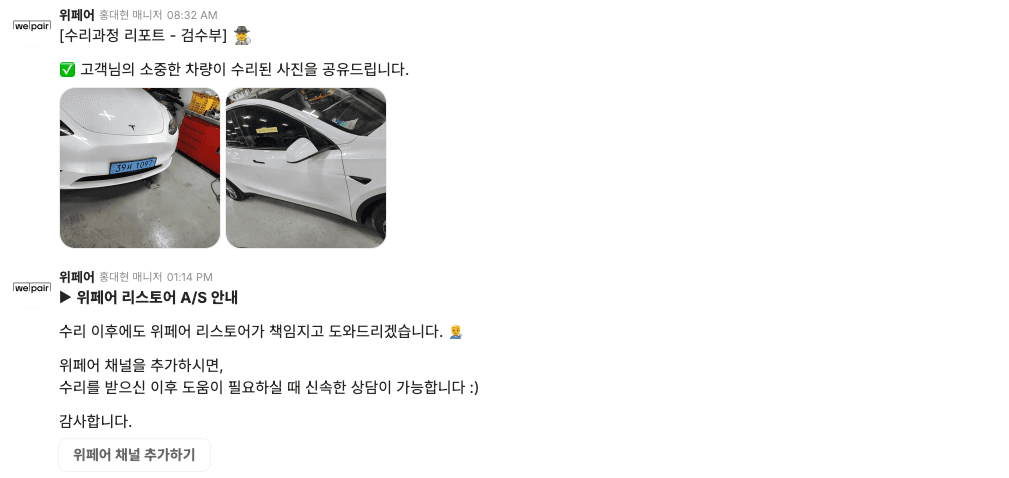 또한 위페어 리스토어팀에서 자동차 수리를 맡기실 경우