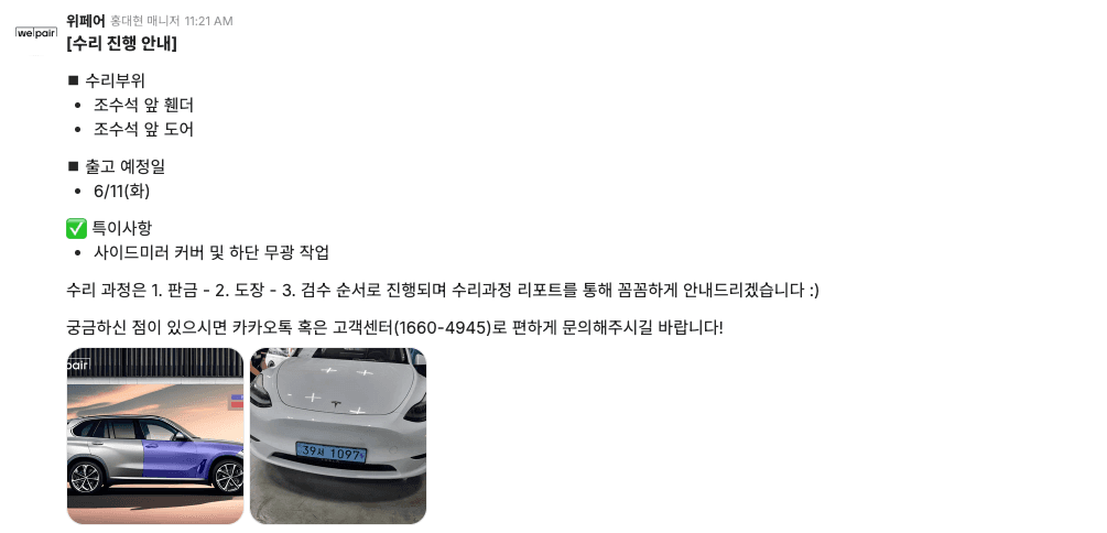 차주님에게 실시간으로 수리 과정을 안내해드려
