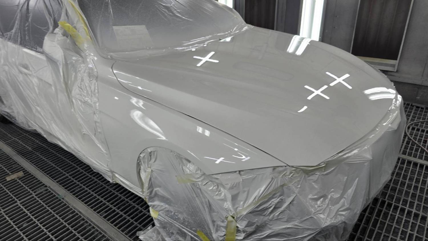 판금이 완료된 차량은 도장 부스로 이동하여