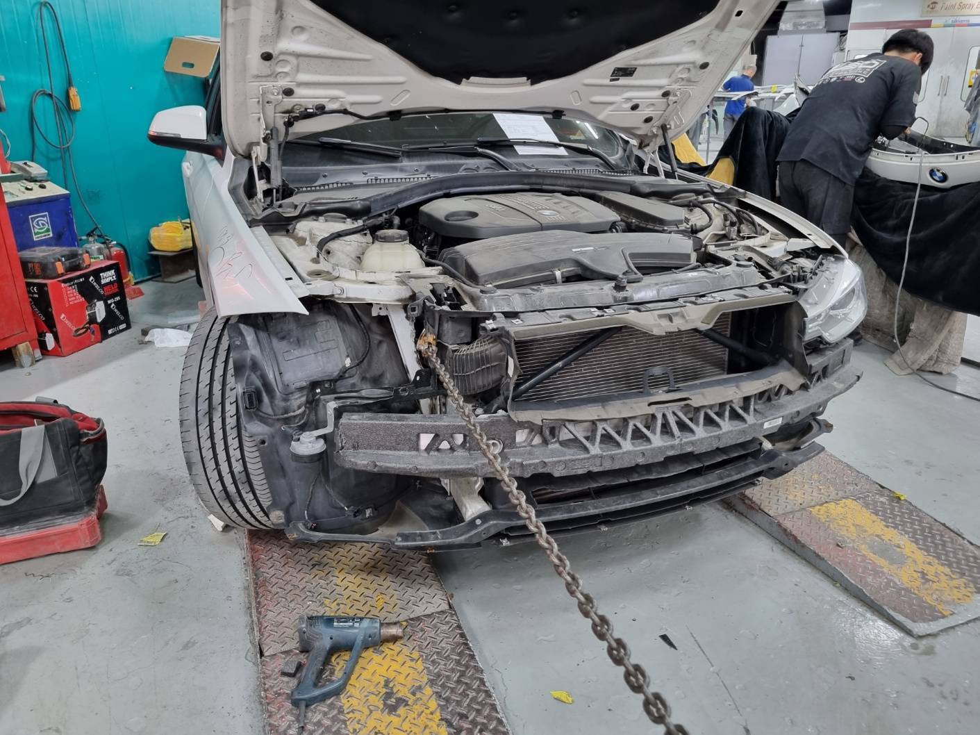 [BMW수리] BMW3시리즈 앞범퍼, 휀더, 본넷 및 판넬 수리