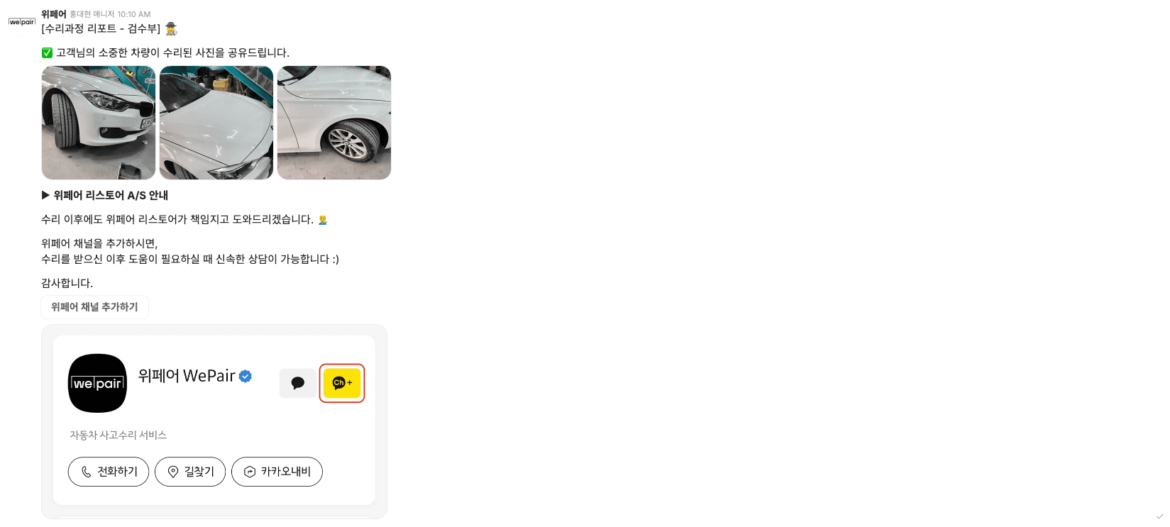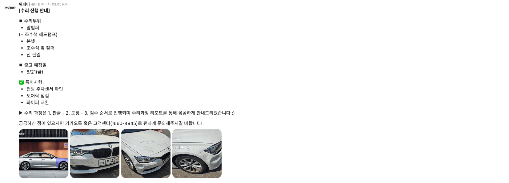 또한 해당 BMW3시리즈 수리 과정을 모두 차주님에게