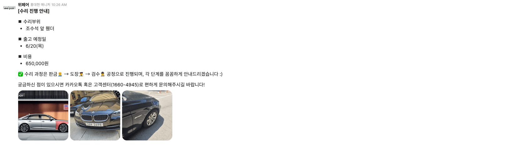 수리가 진행되는 동안에도 차주님에게