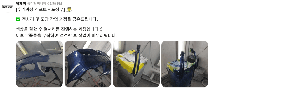 오늘 위페어 리스토어팀의 자동차 수리 사례는