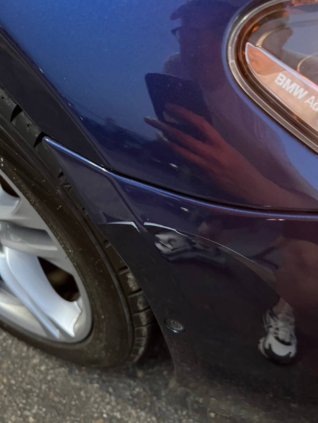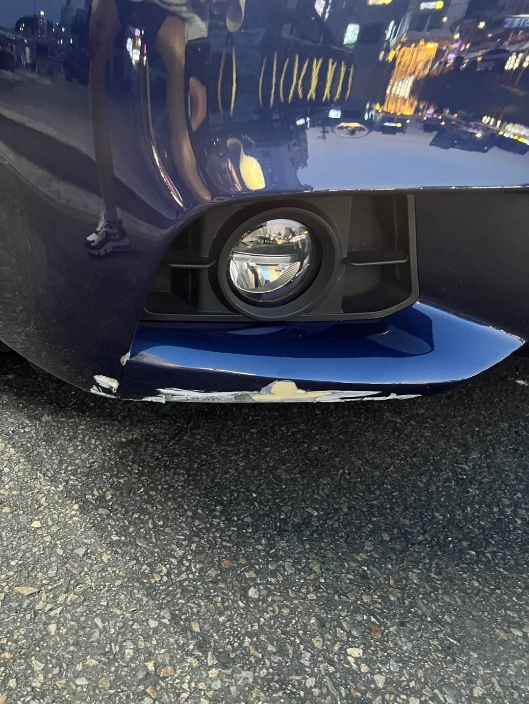 범퍼 하단 부분에는 도장면이 완전히 손상된 모습을