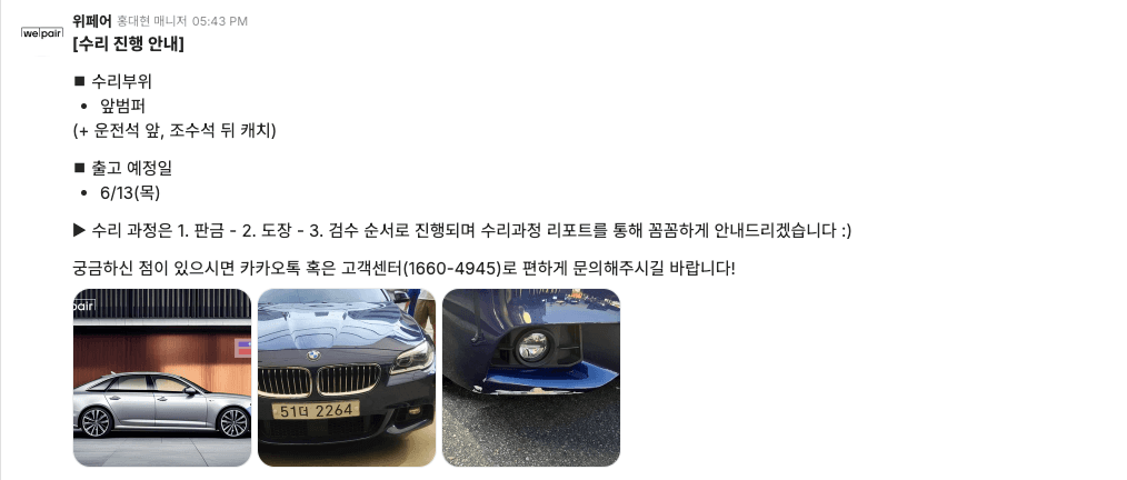 위페어 리스토어팀에서 bmw수리를 맡기실 경우