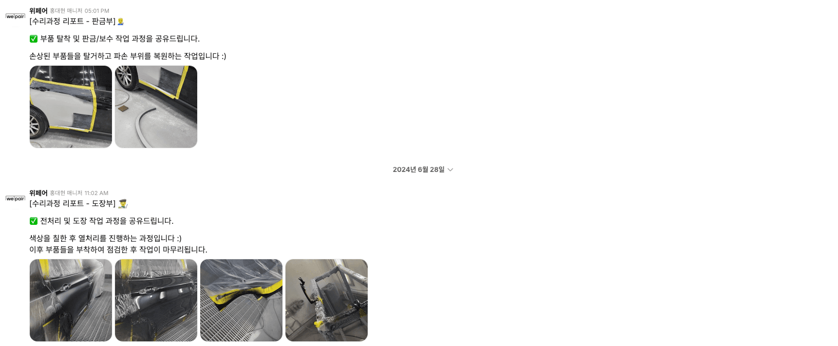 모든 과정을 차주님에게 전달해드리고 있습니다.