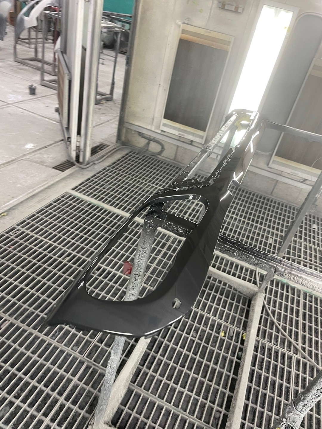 BMW x5의 앞범퍼, 뒷범퍼가 탈거된 후 도장작업이
