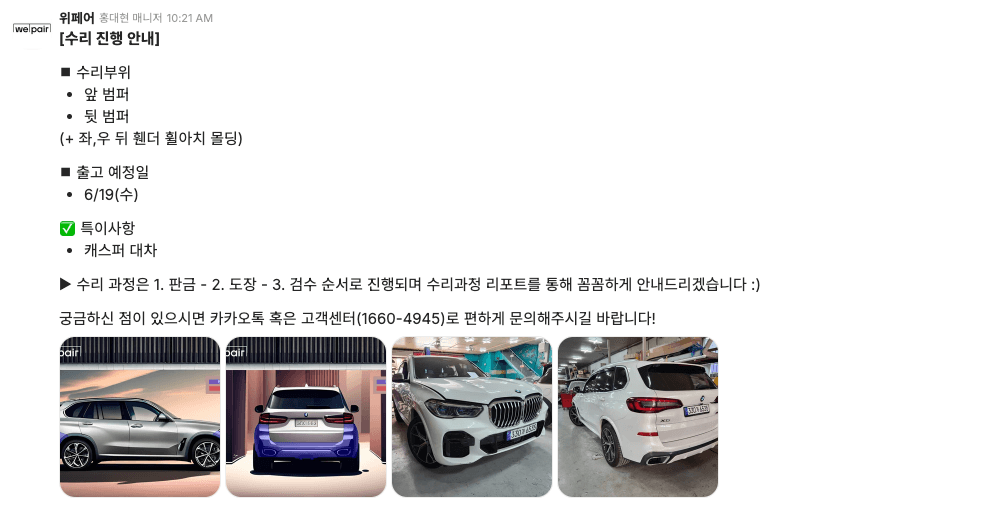 차주님에게 실시간으로 수리 과정을 안내해드려