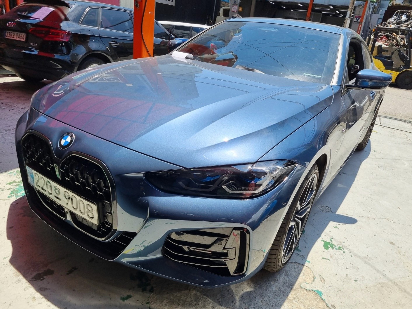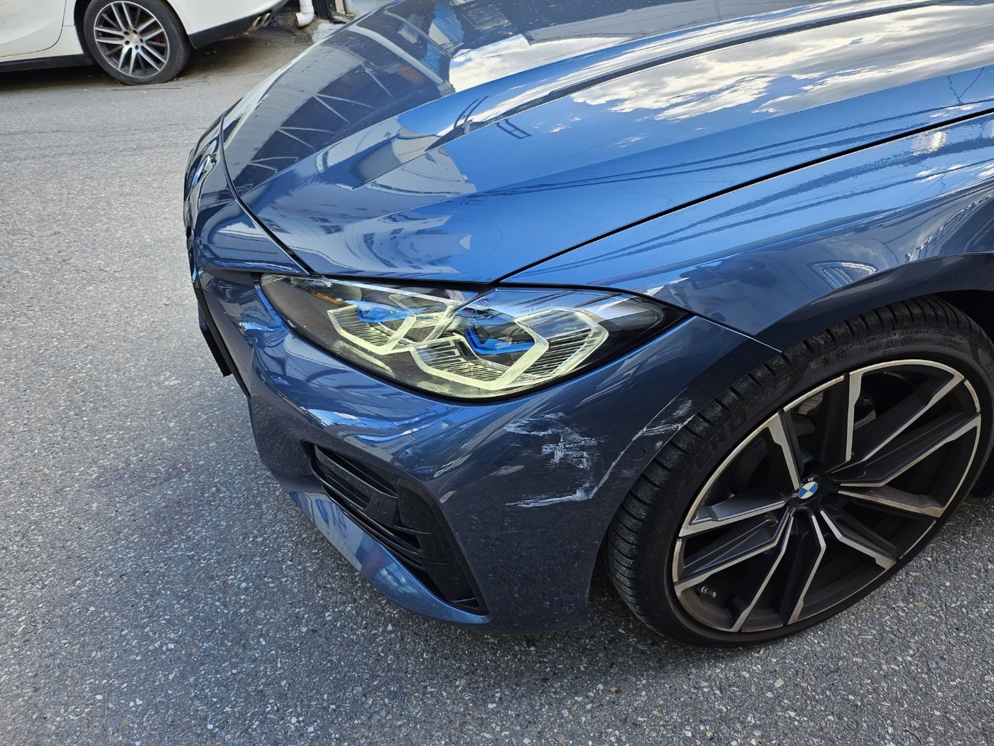 BMW4시리즈의 앞범퍼와 헤드램프 및 휠 수리 사례입니다.