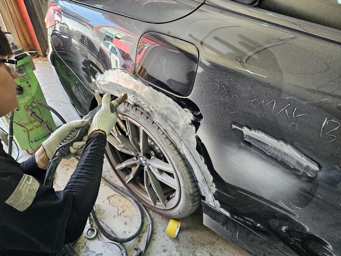 뒤휀더는 판금작업을 통해 평탄화를 합니다.