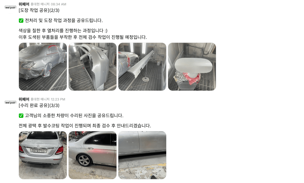 차주님에게 실시간으로 수리 공정을 공유해드리게 됩니다.
