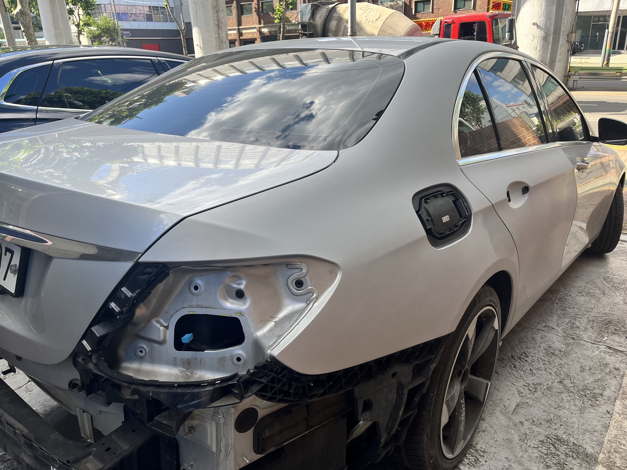 [벤츠 수리]벤츠E클래스 뒷도어, 뒷범퍼 및 휀더, 휠수리